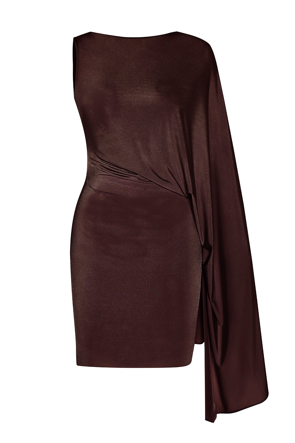 Interpreting modern femininity with bold refinement, this mini dress features a dramatic one-shoulder cape that elevates the silhouette. The body-hugging jersey fabric enhances the feminine form, while the flowing cape adds a sophisticated sense of movement. Our Walk Away Dress embodies both confidence and iconic elegance throughout.