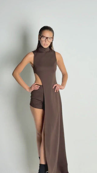Our jersey mini shorts bring the heat with their second-skin fit and subtle sparkle. Cut from soft stretch jersey in a deep brown tone, they’re scattered with mini stone embellishments that catch the light with every move. Minimal coverage, maximum impact they're designed to be worn solo or layered under statement tops for an unapologetically bold look.